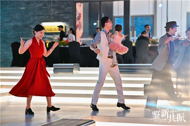 在法迪奥钢艺术中心户外庭院的水上走廊,水波映衬珠光点亮浪漫氛围,宾客们一一踏上水上走廊,以唯美独特的入场仪式开启超燃的爵士狂欢夜。