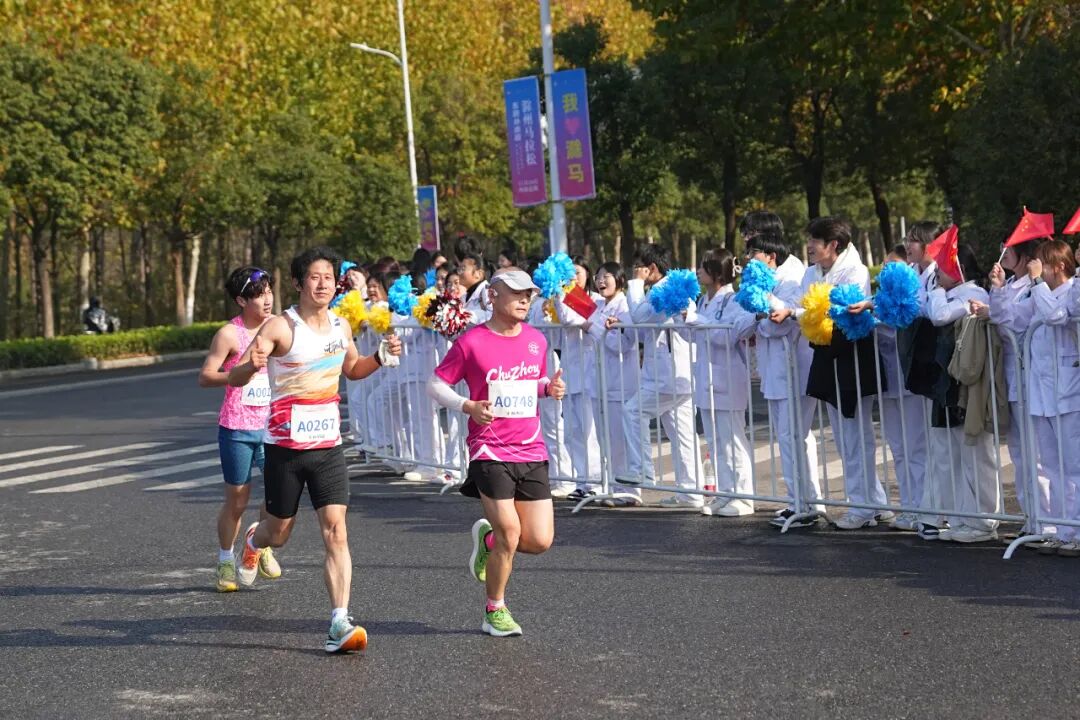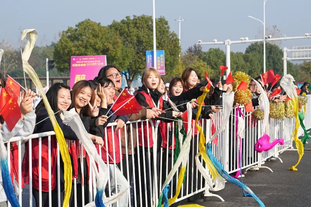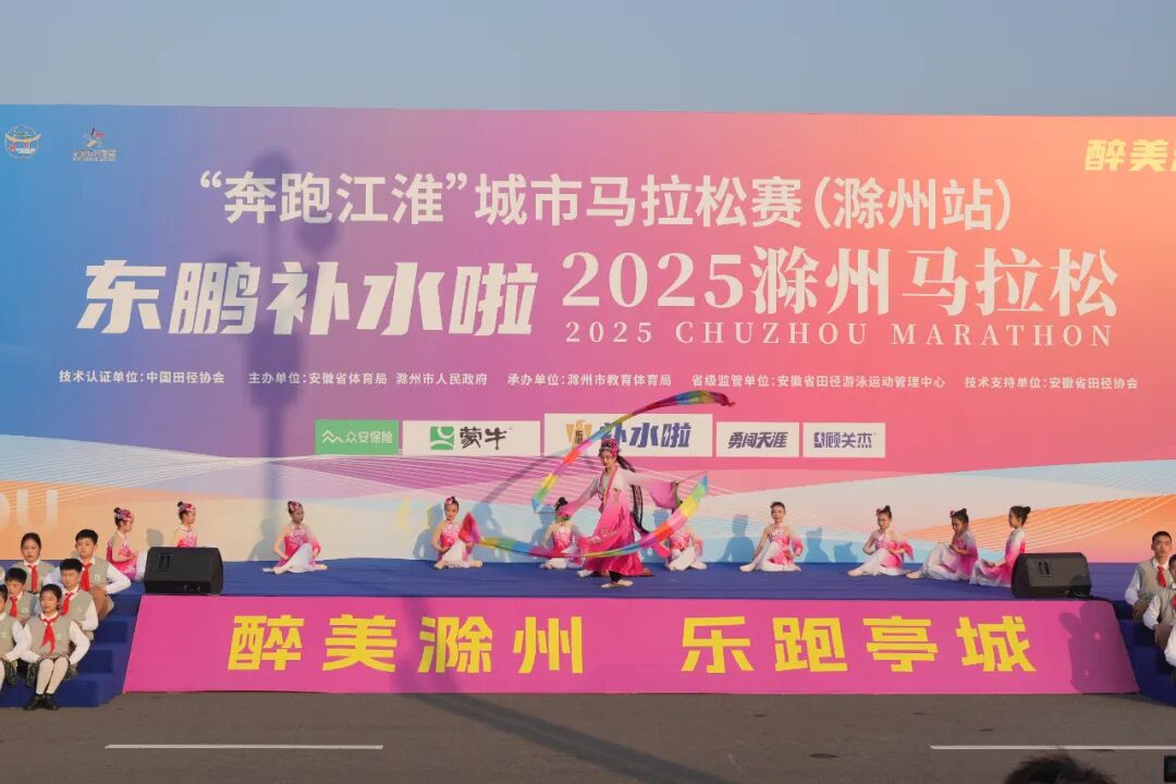 赛道沿线特别设置6处文化加油站,柔力球、凤阳花鼓、抖空竹、舞龙舞狮等特色表演为选手助威。更有学生啦啦队沿途呐喊,加油声浪此起彼伏。
