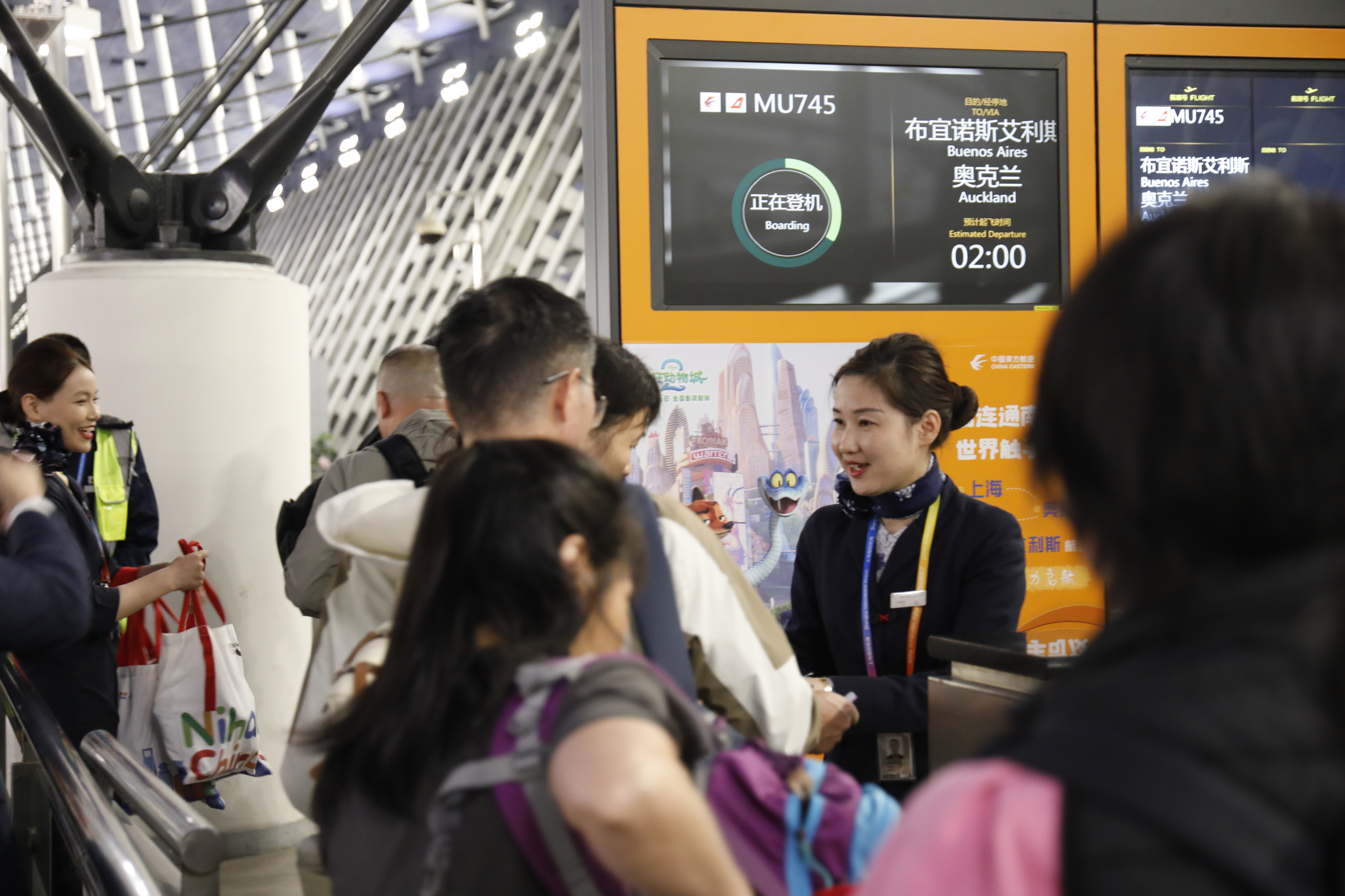 上海—奥克兰—布宜诺斯艾利斯航线是全球首条连接对跖点城市间的商业航线,也成功刷新了全球最长单程航线的纪录。该航线采用波音777-300ER大型宽体客机执飞,去程MU745航班每周一、周四各执行一班,北京时间02:00从上海浦东国际机场起飞,在奥克兰经停2小时25分后,于当地时间16:55抵达布宜诺斯艾利斯;回程每周二、周五执行,航班号MU746,02:00从布宜诺斯艾利斯起飞,经停奥克兰2小时后,于北京时间次日18:00飞抵上海。