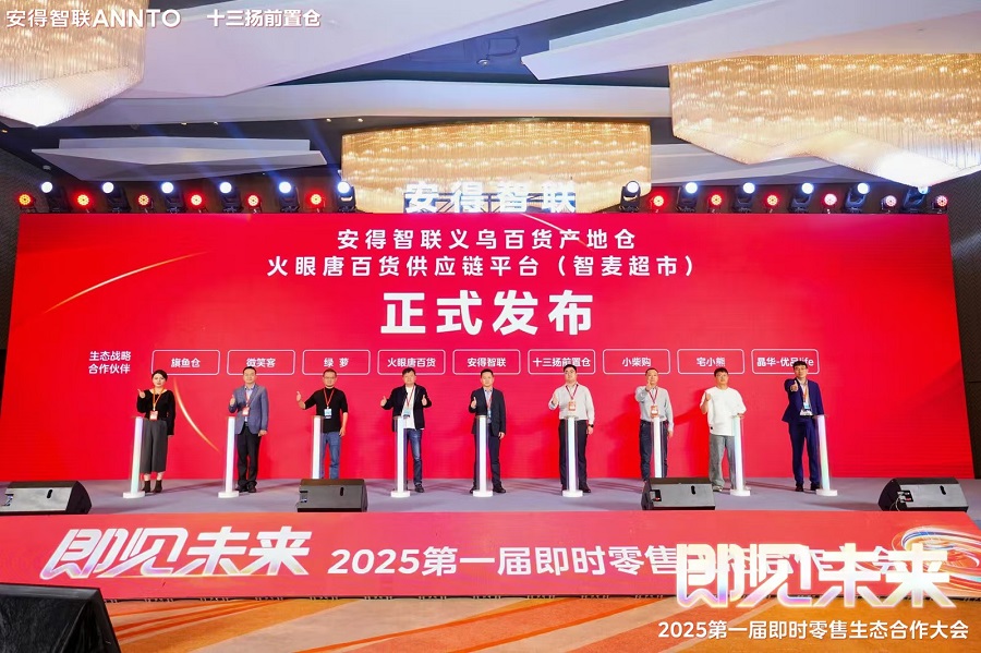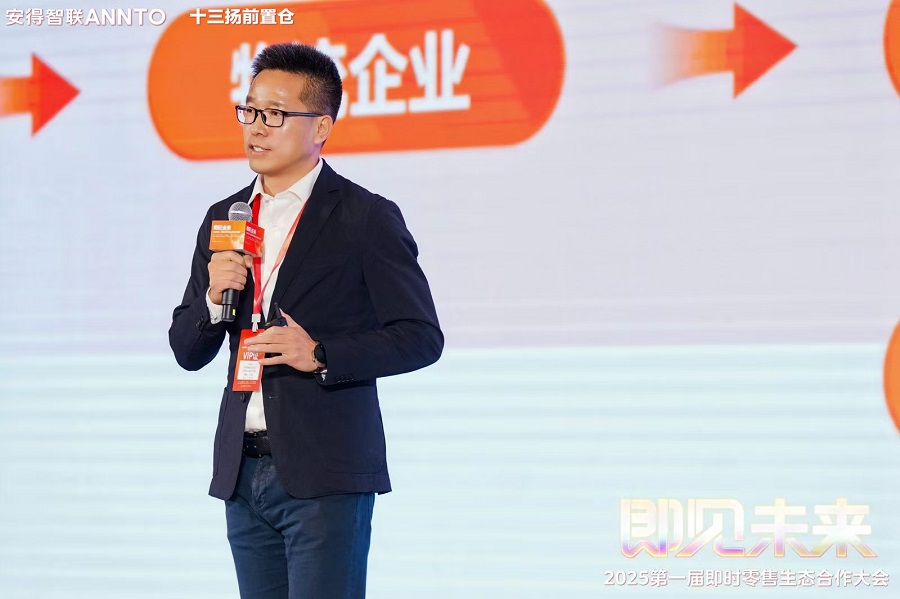 最后,由安得智联即时零售负责人单鹏 正式发布“安得智联义乌百货产地仓,火眼唐百货供应链平台(智麦超市)” 。平台致力于高效链接品牌货盘与全域零售终端,实现采购、物流、资金、票据全链路可视化与合规保障,旨在为生态伙伴提供低成本、高效率的供应链解决方案,夯实行业高质量发展基础。