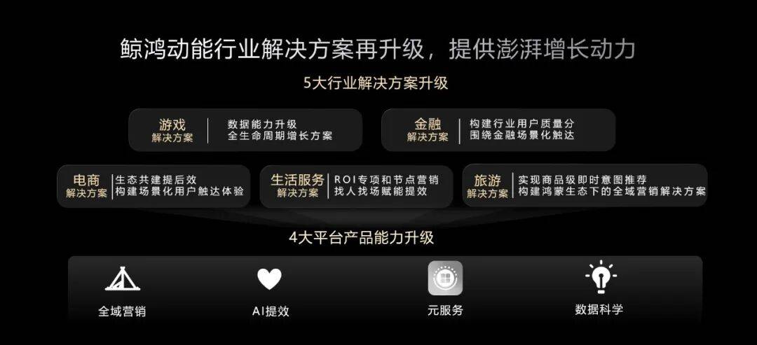 目前,鲸鸿动能已针对游戏、金融、电商、生活服务、文旅等五大行业输出了定制化解决方案。这标志着其“深入行业做增长”的战略进入了规模化落地阶段。
