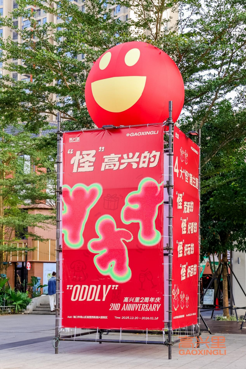 2025年12月至2026年1月,海口高兴里联动潮流复古市集IP「大娃怪市」、多元文化驻地「福楼」、宠物友好IP「狗狗go」、极星街舞及次元宅舞IP「宅舞联萌」,开展了一场涵盖跨年市集派对、圣诞巡游、宠宠欲动计划、街舞赛事、二次元快闪等周年庆狂欢活动。在岁末年初之际,为焕活海口商业氛围创造了更多的可能性。