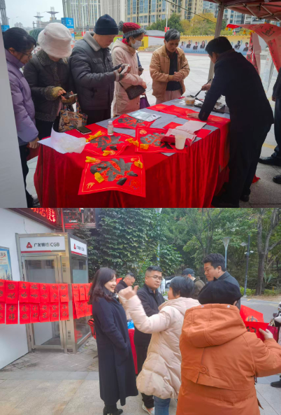 为传承中华优秀传统文化,营造喜庆祥和的节日氛围,深化银保合作、提升客户服务体验,近日,中国人寿寿险鼓楼区支公司联合广发银行白马支行开展“墨香迎春 金融送福”客户服务活动,写春联、送福字,以笔墨传情、以服务暖心,为广大客户送上新春的美好祝福。