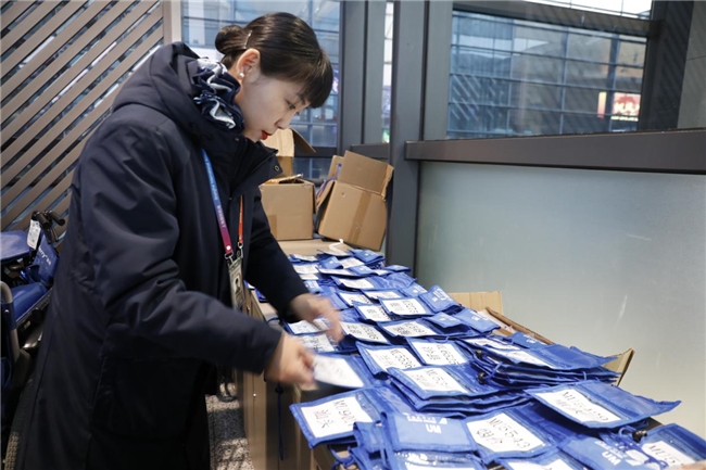 春运以来,东航每日受理的“无陪儿童”数量激增,图为工作人员正在整理当天存放小旅客证件和登机牌的塑封袋