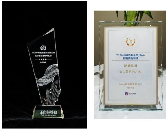 而酒仙集团旗下核心战略品牌容大酱酒,成为本届春糖聚光灯下的绝对焦点——3月25日,容大酱酒斩获中国经营报颁发的“2026中经新质消费先锋品牌·性价比酱酒领导品牌”;3月26日,其核心单品容大酱酒PK400再摘每日经济新闻“2026中国酒业单品/新品营销创新案例”大奖。