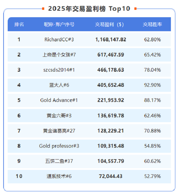 2025 年,社区内交易过 XAUUSD 的账户数达 17,224 个;总交易手数 1,629,338 ,总交易笔数 13,912,206 ,占社区总订单数的 87.7%。