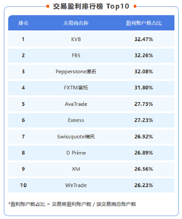 不同类型账户的盈亏表现(盈利账户数占比)如下图: