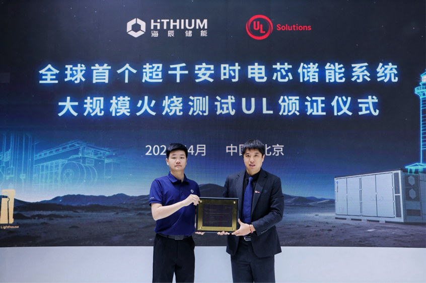 基于上述测试结果,UL Solutions能源与自动化事业部亚太区高级产品经理陈篪向成功通过火烧测试的海辰储能千安时级电芯的6.25MWh长时储能系统颁发了安全认证。他表示,此次测试将千安时级电芯纳入极限火烧验证,严格遵循最新国际标准,不仅验证了海辰储能长时储能系统被动安全设计的可靠性,更为全球长时储能安全标准的完善提供了重要实践参考。