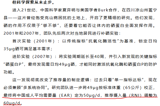 根据中国营养学会推荐,成年人每日硒摄入量需达到50-200微克,而当前成年人日均硒摄入量仅为39微克,确实远低于推荐的每日最低摄入量50-60微克。