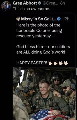 包括美国得克萨斯州州长格雷格•阿博特、得克萨斯州总检察长肯·帕克斯顿和共和党众议员迈克·劳勒等在内的众多美国政客均在各自的社交媒体账号上分享了这张照片。