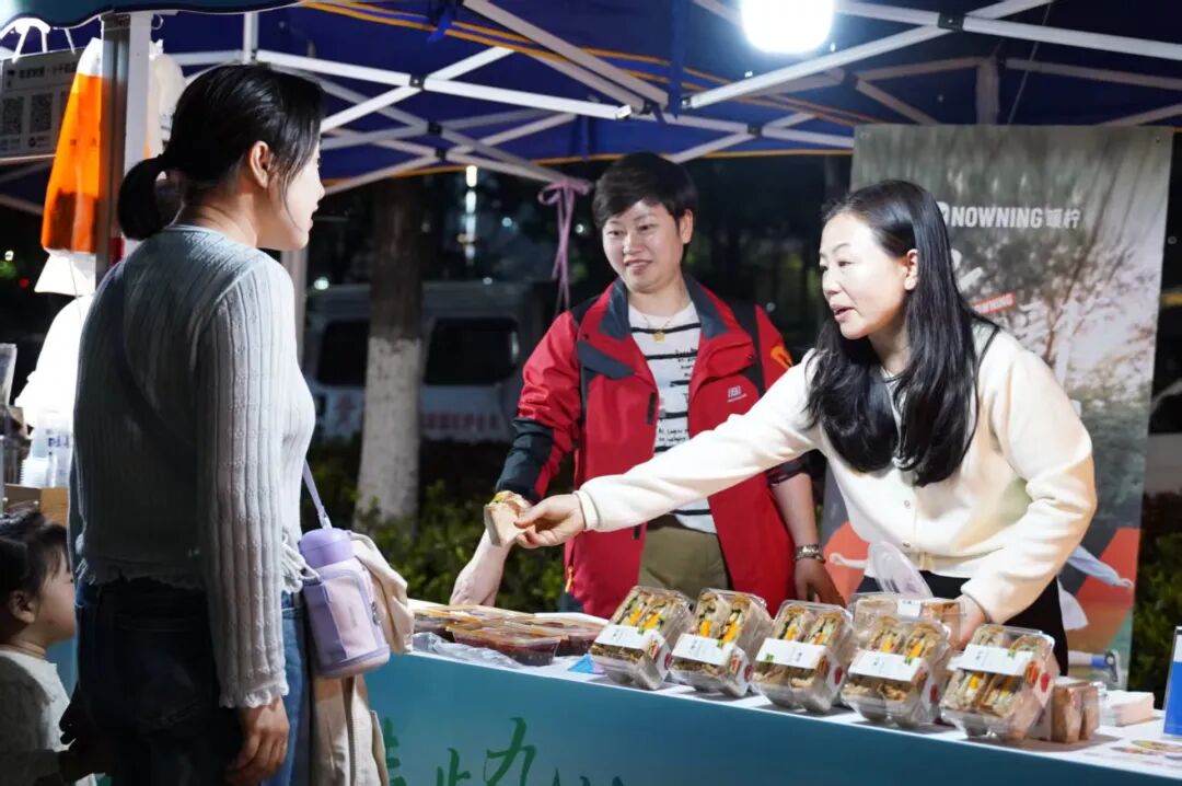 4月18日下午到晚上,滨湖东路上人头攒动,50个特色摊位沿街排开,蔚为壮观。体育集市上,体育用品、体育文创产品琳琅满目;文旅产品展区里,青阳的文化记忆被一件件匠心之作唤醒;农特产品摊位前,九华黄精等当地特产备受青睐;美食体验区中,烧烤、冰粉、卤味等知名小吃的香气随风飘散,吸引着选手和市民们驻足品尝。