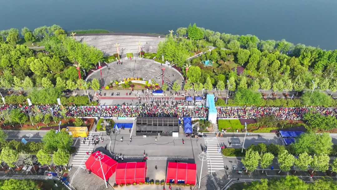 上午8时,选手们从碧波荡漾的芙蓉湖畔出发,踏上18公里的生态人文长廊。九华秘境风景道笔直向南,途经白墙黛瓦的江村,感受德懋堂的禅意悠然;踏入星野东九华营地,面朝青山、环绕绿水,宛如步入“绿野仙踪”的梦幻之境;再沿青通河游步道蜿蜒北上,右揽青通河碧水潺湲,左拥东九华峰峦如聚。6公里健康跑与万人徒步环湖路线则串联起芙蓉湖的核心美景,湖风拂面,柳浪闻莺,让选手在自然的怀抱中尽享运动之乐。