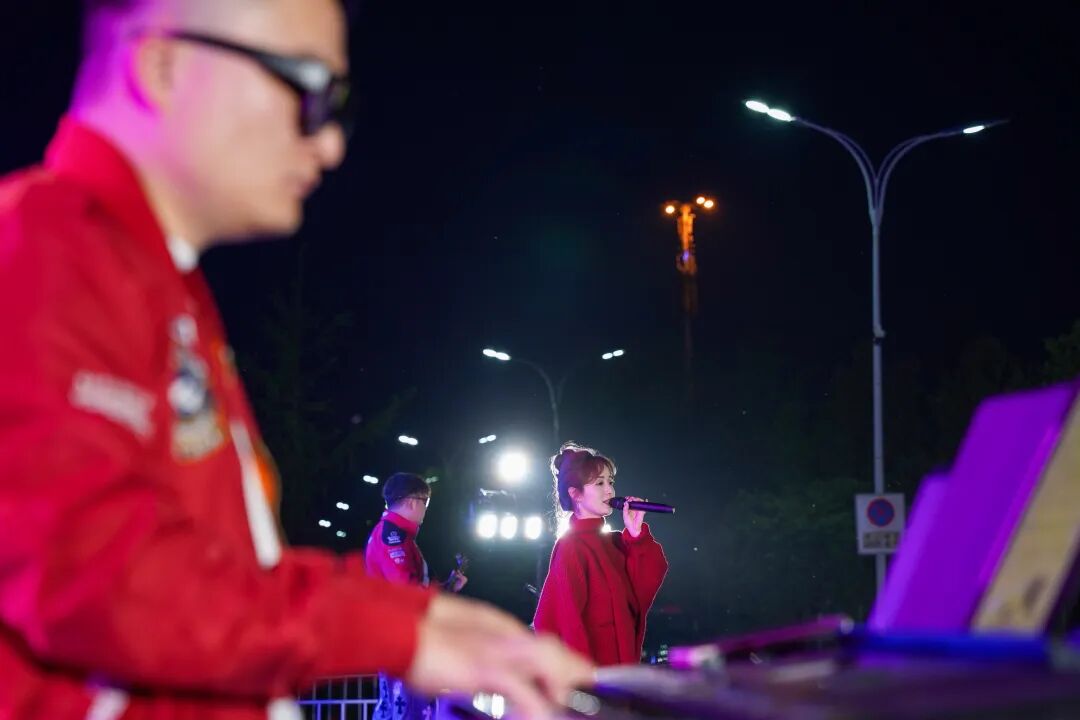 芙蓉湖公园主会场灯光璀璨,一场以“年轮”为主题的音乐演出在湖光月色中拉开帷幕。暖场乐队的旋律轻快流淌,随后进行的赞助商授牌仪式,见证了社会各界对青阳体育事业的热忱支持。晚上8时,音乐节正式唱响——男乐队的激情摇滚、女歌手的温柔吟唱交替上演,台下观众挥舞着手电筒,随节拍摇摆,歌声、笑声、掌声交织成一片欢乐的海洋。