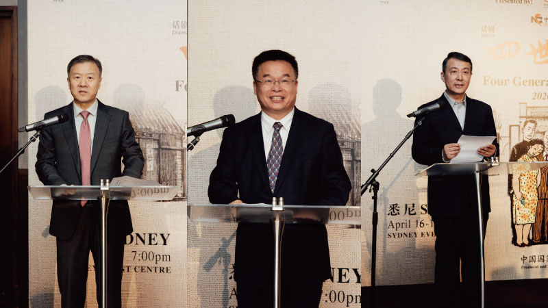 从左到右:中国驻悉尼总领事 王愚;中国对外文化集团有限公司董事长 郭利群;中国国家话剧院演员中心主任 于洋